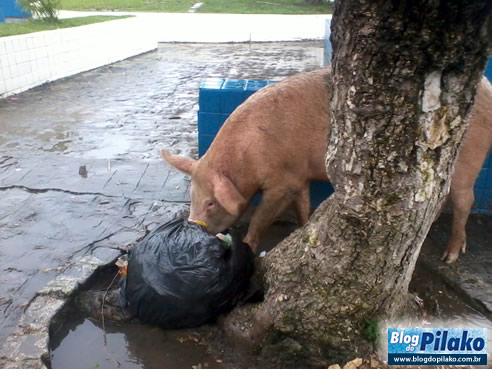 Na tarde do último Sábado (16), mais uma vez nossas lentes flagraram uma porca “infernizando” a vida dos moradores das intermediações do Posto Petrobrás. Até quando a Prefeitura vai permitir que pessoas “alimentem” seus  animais com lixos alheios?