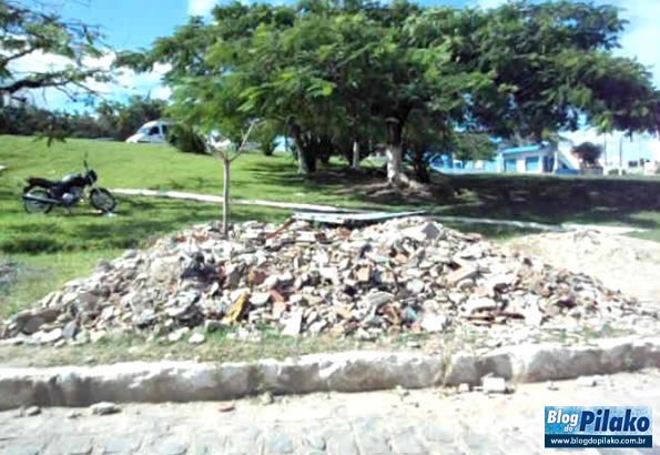 Na praça que fica em frente ao terminal rodoviário de nossa cidade, registramos entulhos e metralhas espalhados, servindo como um péssimo cartão de apresentação para os visitantes que chegam em nossa cidade de ônibus.
