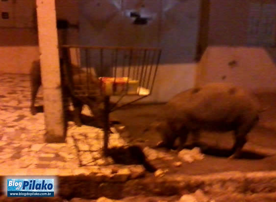 Nossas lentes flagraram mais uma vez, só que agora durante o horário noturno, os porcos nas ruas infernizando a população, sobretudo para as donas de casa que colocam o lixo nas calçadas e os porcos fazem a maior “festa”.