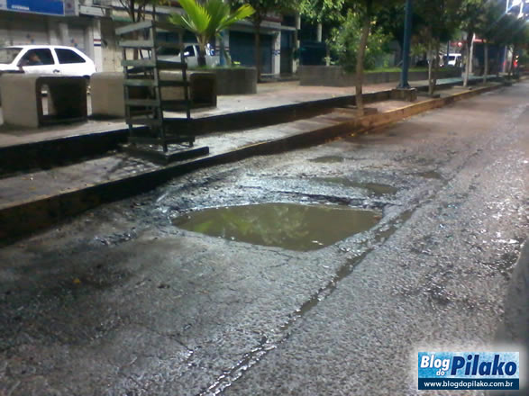 O buraco localizado em frente ao Banco do Brasil, outrora apelidado por nosso blog como “buraco resistente”, pelo simples fato da Secretaria de Obras já ter feitos vários serviços e não consegue tapá-lo em definitivo, vem dando sinais de que nem tão cedo vai deixar de infernizar a vida dos motoristas e motoqueiros da nossa cidade. Mais uma vez ele está lá, firme e cada vez mais fundo. Esperamos que a Prefeitura seja sensata e faça um serviço bem feito, para não acabar sendo mais uma meia-sola.