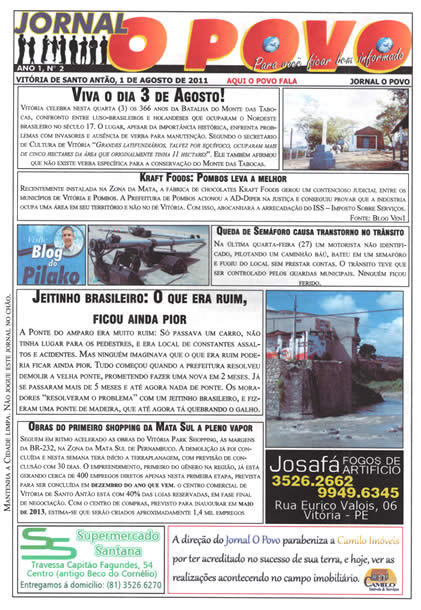 Já encontra-se circulando o número 2 do Jornal “O Povo”. Vale a pena conferir.