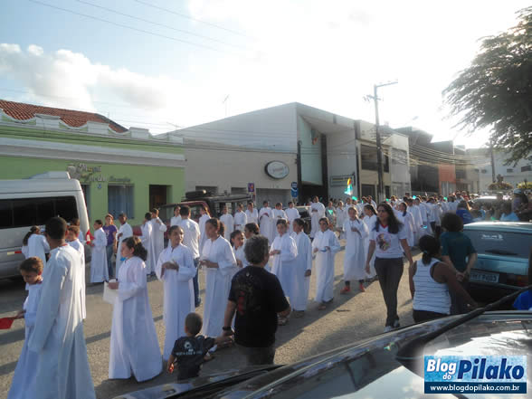 Representando dom Fernando Saburido o monsenhor Maurício Diniz celebrou a missa campal que contou com a participação de muitos fiéis logo após a procissão que reuniu dez imagens de santos em andores que percorreram as ruas da cidade.