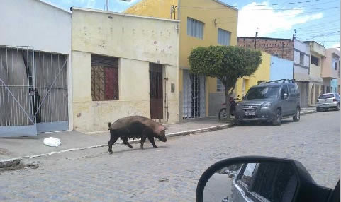 Recebemos do internauta Emanuel, a foto de uma porca circulando nas proximidades da Betel Confecções, na Manuel Borba. O Internauta ainda destacou: “Essa porca passa diariamente por aqui, sei que vem lá do lado da CEAVI.” É uma pena que Vitória, uma cidade que vem crescendo com as fábricas, infelizmente vem crescendo também o número de bichos nas ruas.