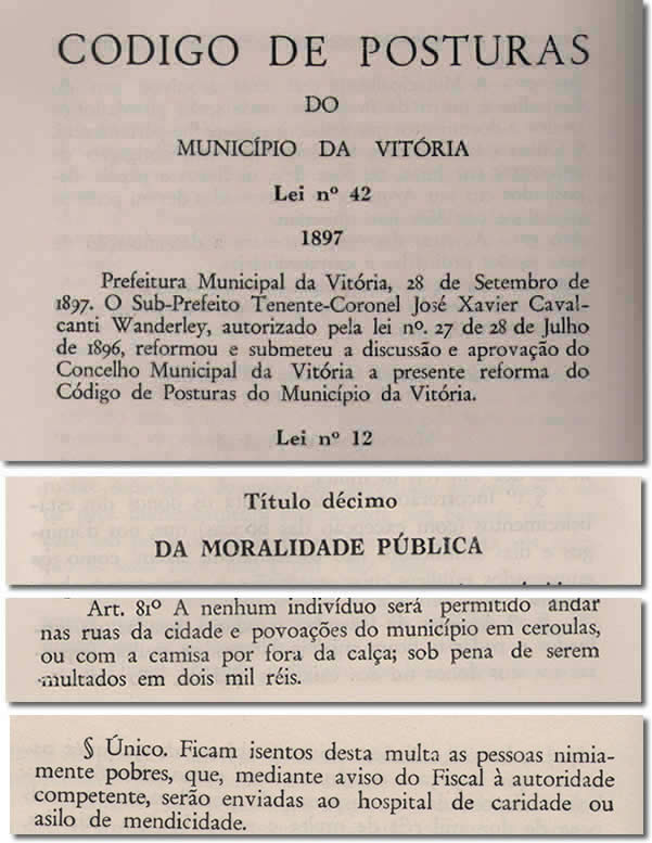 Dando continuidade a coluna de curiosidades vitorienses, publicaremos trechos do CODIGO DE POSTURAS do município da Vitória, datado de 1897. Os trechos foram retirados do volume 07 da revista do Instituto Histórico e Geográfico da Vitória, editada em 1977. São muitas curiosidades, que valem a pena serem disponibilizadas em nosso blog.