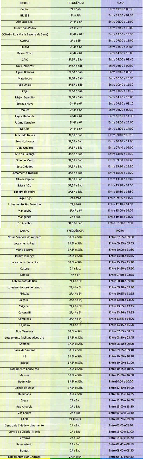 Disponibilizamos o cronograma de coleta de lixo nos bairros da cidade com dias e horário de recolhimento. Fique atento, caso não esteja funcionando como programado, denuncie e cobre, faça valer seus direitos.