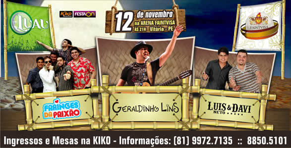 Nesta quinta (10) e nesta Sexta (11) o blog irá sortear um DVD de Geraldinho Lins e um ingresso para o LUAU FAINTVISA, que será realizado no próximo sábado (12).