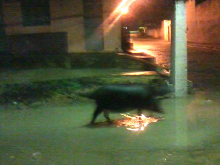 Recebemos de um internauta, que pediu para não ser identificado, a foto de um porco perambulando pelo bairro do Cajá na noite desta quarta-feira (09). É um problema simples, que parece que nem tão cedo terá um fim.
