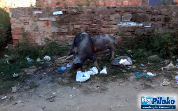 Na manhã deste domingo (20) no bairro do Jardim Ipiranga porcos circulavam livremente fuçando lixos. Os serviços de fiscalização e recolhimento de animais nas ruas da cidade é de competência da Prefeitura, segundo comentários, o responsável por esse serviço é o senhor Beto Lira, que é sobrinho do Prefeito e ao que parece, não vem dando conta do serviço.