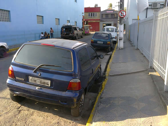3. Eu concordo que tenha que se multar, mas aqui parece que isso não funciona. Lembro que alguns meses atrás fizeram uma campanha educativa no trânsito e esta rua ficaria proibido de estacionar nesse lado que é mostrado nas fotos; o que aconteceu é que no início houve fiscalização, mas depois não, então começou chegando um carro, depois outro e agora continua tudo da mesma forma.