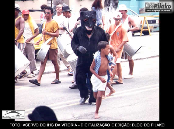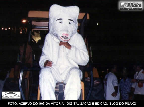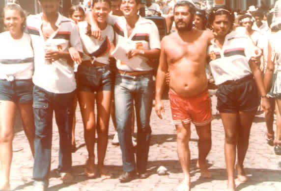 Cristina, Fernando Tampinha, Ana Maria, Dryton, Nego e Jandira durante desfile da GIRAFA em 1984.