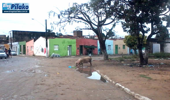 Na tarde de sábado (14) nossas lentes flagraram nas proximidades da ponte do Dique um porco que circulava livremente pelas ruas fuçando lixo. Algumas pessoas já nos abordaram comentando que bichos nas ruas da cidade seria algo normal, em parte até concordei, mas, bichos circulando em perímetros urbanos não é normal em lugar nenhum, daí as nossas contínuas cobranças, não podemos perder a capacidade de entender o que é “normal” e o que é “vergonhoso”.