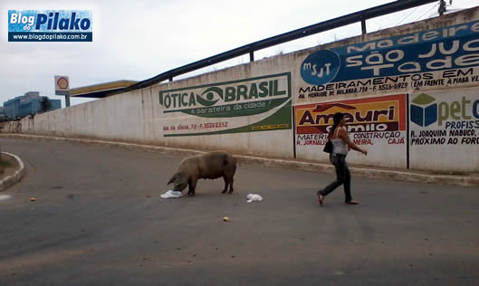 Na tarde de ontem (19) nossas lentes flagraram nas proximidades do viaduto do Cajá, o que não é mais novidade para ninguém, uma porca fuçando lixo. O curioso, é que desta vez a “danada” se sentido a “dona” do pedaço estava parando o trânsito, ou seja, “greando” com a cara dos nossos gestores. Segundo comentários, existe carro agregado na Prefeitura para fiscalização e recolhimento de animais nas ruas, sendo inclusive, esse serviço, coordenado pelo senhor Beto Lira, que é sobrinho do Prefeito e pelo o que se vê, não vem “dando conta do recado”.