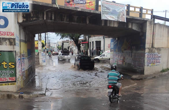 Registramos há pouco, por volta das 16h30 da tarde desta sexta (20), no viaduto do Cajá, um alagamento proveniente da pequena chuva de verão. A Prefeitura deve ficar em alerta, pois se continuar do jeito que tá, teremos sérios problemas no próximo inverno.