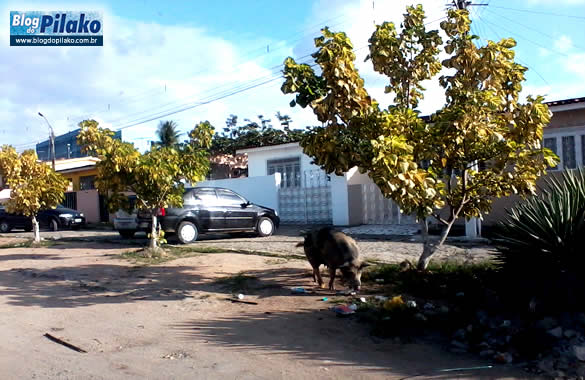 Na tarde de ontem (05) nossas lentes flagraram uma porca circulando livremente na movimentada Avenida Henrique de Holanda, próximo ao posto Shell Baiana do amigo Leandro. Os riscos de acidentes, principalmente para os motoqueiros, se multiplicam com esses animais soltos.