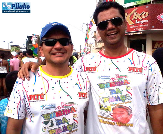 Encontramos no meio da folia os amigos, de longas datas dos “campos de pelada”, o engenheiro Albino Andrade e o advogado Adeilton Apolinário, ambos leitores assíduos do Blog do Pilako vitorienses antenados com a cidade.