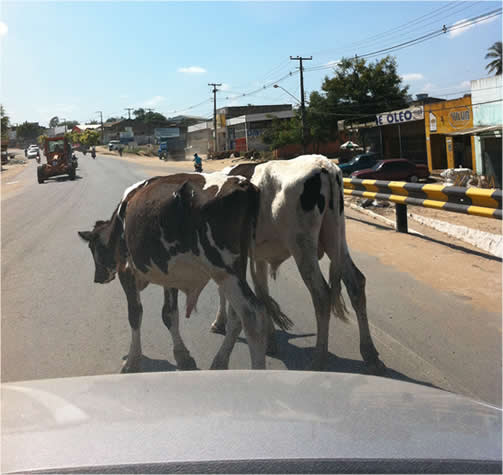 Deve estar havendo algum equívoco, pois estas fotos devem ter sido tiradas na Índia, pois lá as vacas são sagradas e andam livremente pelas sem que sejam sequer incomodadas.