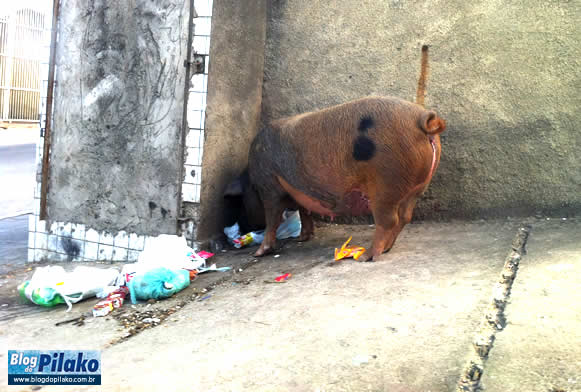 Na tarde de ontem flagramos, mais uma vez e no mesmo lixo e local (próximo ao Viaduto do Cajá), a mesma porca se alimentando. Só quem não sabe que essa porca “bate o ponto” todo dia nesse local é o pessoal da Prefeitura, que segundo comentário, tem como responsável o senhor Beto Lira, que é sobrinho do Prefeito.