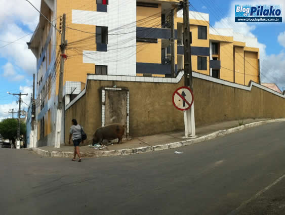 Mais uma vez, no mesmo lugar e mais ou menos no mesmo horário as nossas lentas flagraram a “Porca da área” fazendo seu habitual “passeio alimentar”. Segundo comentários o responsável pelos serviços de fiscalização e recolhimento de animais nas ruas é o senhor Beto Lira, sobrinho do prefeito, que não vem, aos olhos de todos, dando conta do problema.