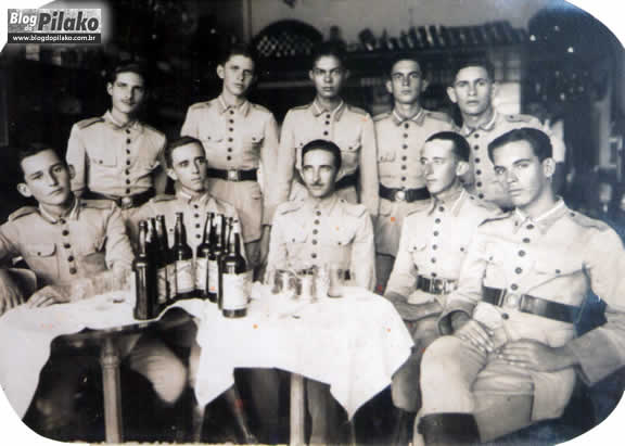 O Tempo Voa: Soldados em Festa (1944) Publicado em 17 de abril de 2012 por Foto registrada em 1944. EM PÉ: ADOLFO COSTA, LOURENÇO DUTRA, SÓCRATES BITENCOURT, GERALDO VARELA, HUGO COSTA. SENTADOS: ZITO MARIANO, ASOR MAURICIO, SARGENTO VALDEMIM BORGES SILVA, ANTONIO VANDELU, APELIDO MACACO, APELIDO ANTONIO MACACO.