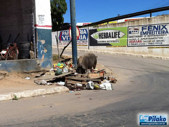 Na tarde de ontem (16) nossas lentes registraram, mais uma vez, a porca da “área 1” do Cajá fazendo uma das suas refeições, sendo assim, não custa lembrar aos nossos gestores que animais circulando livremente nas ruas da cidade é um péssimo cartão de visita para quem chega e um incomodo vizinho para quem mora.