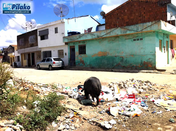 Na manhã de hoje (26) nossas lentes flagraram no centro comercial da cidade, próximo aos supermercados Novo Hiper e Todo Dia um porco circulando livremente fuçando os lixos e promovendo a maior sujeira. Em praticamente todos os bairros da cidade os porcos, como também outros animais, tais quais vacas, bois, burros e bodes tem presenças garantidas.