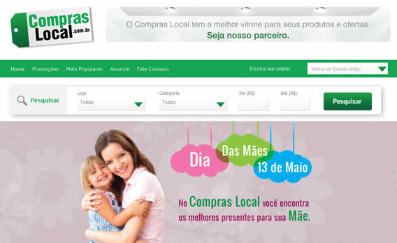 Em pouco mais de dois meses no ar o site Compras Local, criado por jovens empresários   vitorienses, vem aquecendo (e muito) o comércio de Vitória através de ofertas oferecidas pelos estabelecimentos comerciais, na internet.