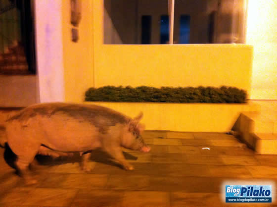Na noite da sexta-feira (04) nossas lentes flagraram na Rua Primitivo de Miranda uma porca circulando livremente em busca da “alimentação noturna”. Que seja noite ou dia em praticamente em todos nos bairros da cidade a pisada é a mesma.