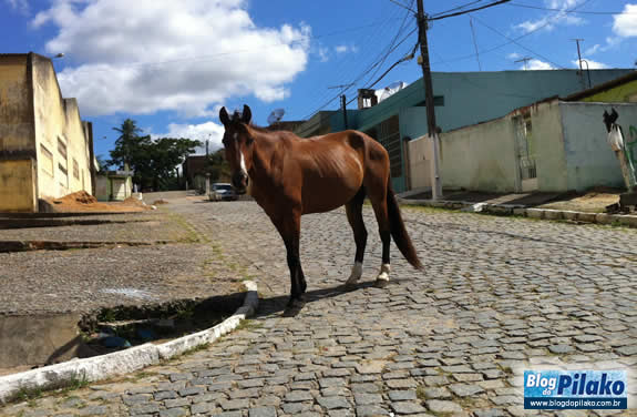 Na manhã de hoje (11) nossas lentes flagraram nas ruas do bairro do Cajá um cavalo circulando livremente. Até o momento o Prefeito Elias Lira, juntamente com seu sobrinho Beto Lira que segundo comentários é a pessoa responsável pela fiscalização e recolhimento dos animais nas ruas da cidade, vem perdendo a “guerra” contra os bichos, que nessa particular batalha, representa o lado do mau, pois os mesmo estão com seus “exércitos” crescente, basta ver a quantidade de bichos nas ruas, enquanto “exército” do lado “bem” que seria a prefeitura, hipoteticamente representando o povo, que tem, em seu favor, um forte poder de fogo parece estar encurralado, pois, eis que surge um elemento surpresa, chamado “votos dos donos dos bichos” que parece ser a coisa mais importante a ser levado em conta, já que estamos no “terreno movediço” do ano eleitoral.