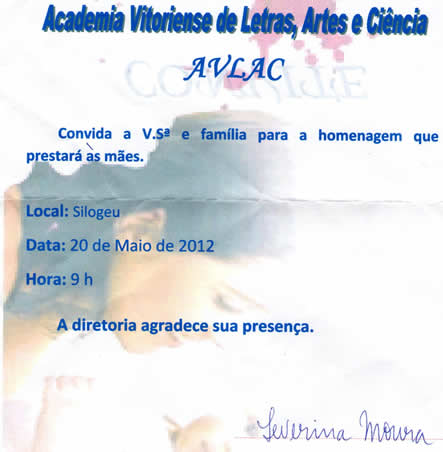Academia de Letras realizará reunião festiva em comemoração ao dia das Mães. Publicado em 17 de maio de 2012 por