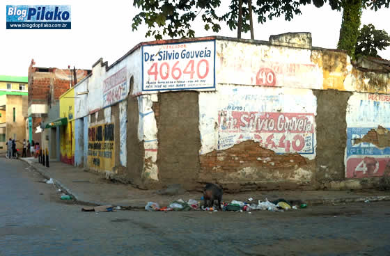 Na tarde de ontem (17) flagramos, mais uma vez e no mesmo lugar, um porco se alimentando de lixo. A Rua Primitivo de Miranda, no centro comercial da cidade, pelo fato de sempre ter lixo espalhado é um dos pontos preferidos pelos porcos, já que em nossa cidade ainda somos obrigados a conviver, apesar de alguns avanços, com porcos nas ruas.