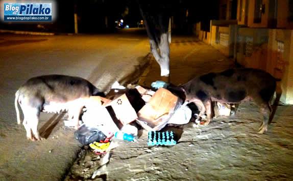 Na noite da sexta (15) flagramos na Rua Dr José Rufino, na principal do Cajá, dois porcos se alimentando de lixo. Em praticamente todos os bairros da cidade a pisada é a mesma, são animais soltos circulando pelas ruas promovendo a maior sujeira. O prefeito Elias Lira está pouco se lixando para esse absurdo. Para ele tanto faz ser gente, criança ou porcos, é tudo a mesma coisa.