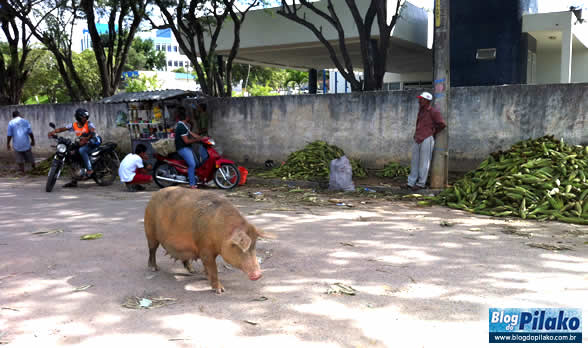 Apenas para retratar a falta de higiene e respeito com as pessoas no local, nossas lentes registraram, no momento da reportagem, uma porca circulando e se alimentando livremente entre as pessoas e  mercadorias.
