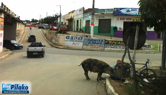 Na tarde de ontem (27) nossas lentes flagraram nas imediações do Viaduto do Cajá uma porca se alimentando de Lixo. Em praticamente todos os bairros da cidade é possível, sem maiores dificuldades, encontrar animais circulando livremente pelas vias públicas.