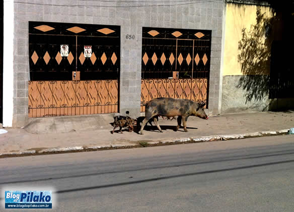 Nossas lentes flagraram na tarde de hoje (04) na Rua Dr José Rufino, no bairro do Cajá, uma porca com seus porquinhos, fazendo mais um passeio pelas calçadas do bairro em busca do santo alimento lixo de todo dia. Em praticamente todos os bairros da cidade a pisada é a mesma, são animais fuçando lixo e infernizando a vida das donas de casa. O prefeito Elias, que acha tudo isso absolutamente normal, está pouco se lixando com o problema. É lamentável.