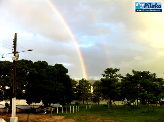 Arco-iris no céu da Vitória Publicado em 6 de julho de 2012 por Na tarde de ontem (05) por volta das 17h no Pátio da AABB, nossas lentes registraram uma belíssima cena, digna de cartão postal, onde a formação do ARCO-ÍRIS deu uma beleza toda especial a paisagem.