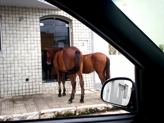 Recebemos de uma internauta, moradora do bairro da Matriz, que pediu para não ser identificada, a foto de dois cavalos perambulando pela Rua Sebastião Carneiro da Cunha, em frente a um Escritório de Advocacia. “Será que eles queriam se divorciar?!” – brincou a internauta. Tem bichos soltos em tudo que é “canto” da cidade.