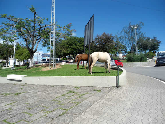 Recebemos de um registro fotográfico de um internauta, que pediu para não ser identificado, onde dois cavalos pastavam “tranquilamente” pela Praça 3 de Agosto dizendo: “isso é um absurdo, eu queria saber o motivo da Prefeitura não dar uma solução para isso. Parabéns pelo blog, não bota meu nome”.