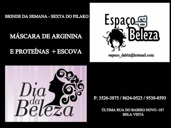 Acaba de ser incluido na Sexta do Pilako desta semana uma Máscara de Arginina e Proteínas + Escova, um brinde do Espaço da Beleza, que fica localizado na rua Industrial, última rua do bairro novo, na Bela Vista. O sorteio será realizado na tarde de quinta-feira (26).