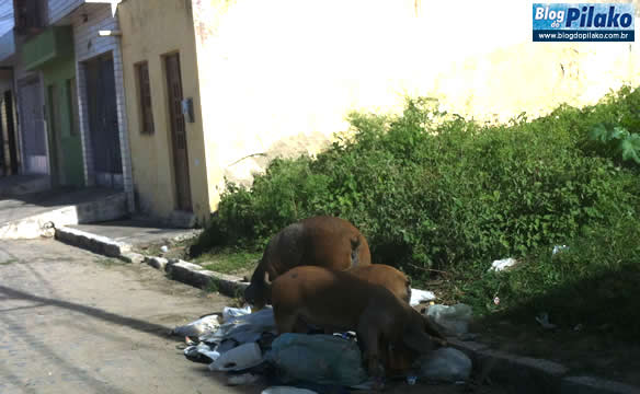 Na tarde deste domingo (29) nossas lentes flagraram no bairro da Mangueira uma “família” de porcos se alimentando de lixo nas ruas. Em praticamente todos os bairros na cidade encontramos animais soltos circulando pelas vias públicas promovendo a maior imundice.