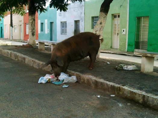 “Essa foto foi tirada na Av. Nossa Senhora de Fátima…, os porcos estão perto de uma invasão maciça a praça da matriz…, Eles estão chegaaaando!!! Não é exagero dizer que essa cidade é uma porqueira…”