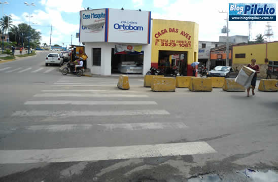 Depois de mais de 10 dias fora do lugar, na quinta feira (02) as peças voltaram a demarcar a sinalização no local. Desta vez, tomaram o cuidado de não colocar os mesmos por cima das faixas de pedestres.