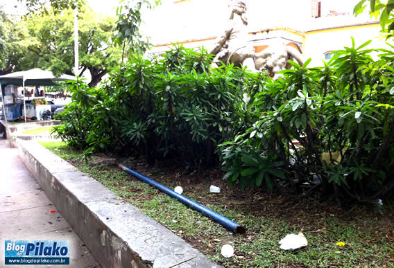 Nossas lentes flagraram na manhã de hoje (10) na histórica Praça Leão Coroado, inaugurada em 1917 pelo então Prefeito Eurico Valois, algumas cenas deprimentes em virtude do descaso e abandono “patrocinadas” pela gestão do Governo de Todos.