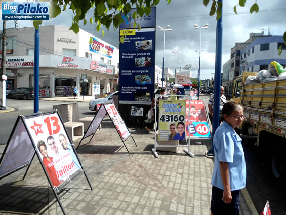 Em nossa cidade desde a implantação da “Cartilha do Atraso” pelo Coronel José Joaquim da Silva, que as calçadas públicas são “moedas” de troca para se conseguir votos. E bem verdade que esse tipo de propaganda eleitoral é permitida pela Justiça Eleitoral, desde que não atrapalhe a circulação das pessoas.