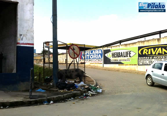 Nossas lentes flagraram na manhã de ontem (27) nas proximidades do Viaduto do Cajá, mais uma vez, uma porca se alimentando de lixo. Em praticamente todos os bairros na cidade a “pisada” é mesma.