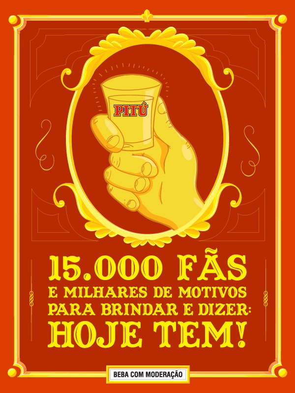 MOMENTO PITÚ: Comemorando 15 mil fãs no FACEBOOK! Publicado em 23 de novembro de 2012 por 15 mil fãs no Facebook, 15 mil brindes, 15 mil happy hours. Um agradecimento da Pitú a cada um dos 15 mil Pituzeiros! HOJE TEM! \o/
