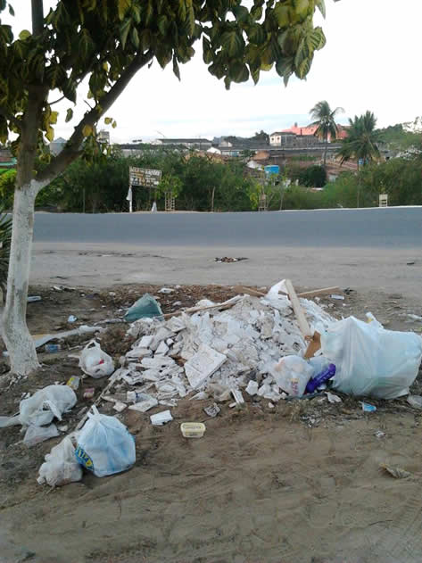 “Entulho a mais de 15 dias e nada da prefeitura recolher, la no fundo as margens da BR, até uma carcaça de um gato tem. Isso é ao lado do posto SHEL BAIANA.” – disse o internauta.