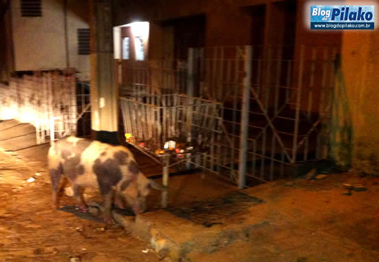 Nossas lentes flagraram na noite de ontem (18) no Loteamento São Vicente Ferrer, mais conhecida como “Subida da Faculdade”, um porco se alimentando de lixo. Em praticamente todos os bairros da cidade a “pisada” é a mesma.