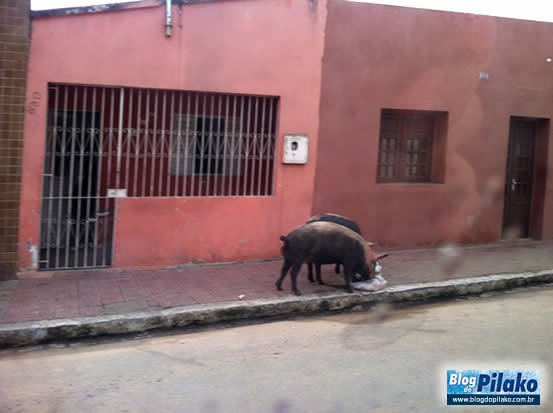 Na manhã de ontem (18) nossas lentes flagraram, mais uma vez, porcos circulando pelas ruas e calçadas no bairro do Cajá. Gostaria apenas de lembrar aos senhores gestores, que porcos e pessoas vivem de forma diferentes, portanto, devem ser criados separados uns dos outros.