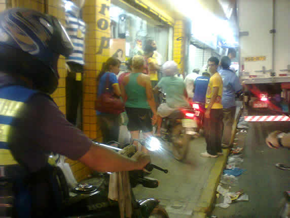 “O transito de Vitória continua um caos, motoqueiros pela calçadas em frete da loja Tropical (sexta-feira 28/12/2012) que em 2013 o secretário Hidelbrando consiga dar pelo menos um jeitinho brasileiro.” – Disse o internauta, ao enviar as fotos.