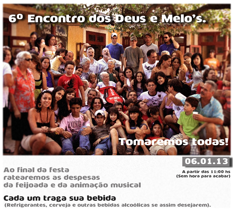 Apesar de me chamar Ramon da Rocha Fernandes Júnior, me sinto, sem sombra de dúvidas, um DEUS E MELO, já que minha avó Acácia, Tia Cacá, era uma DEUS e MELO pura e de origem. É o nosso segundo ano. Viciei. Ano que vem, se PAPAI DO CÉU assim permitir, estaremos ai novamente. Um beijo grande a todos !!!